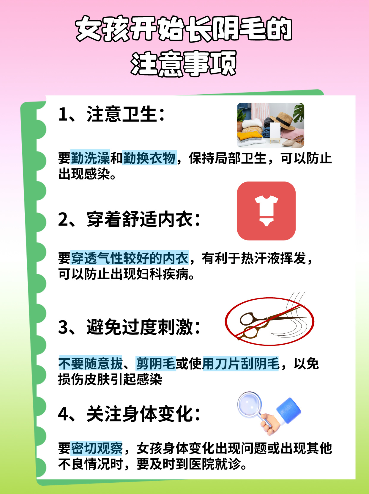同时医生还告知了女孩开始长阴毛的注意事项,具体如下:❌