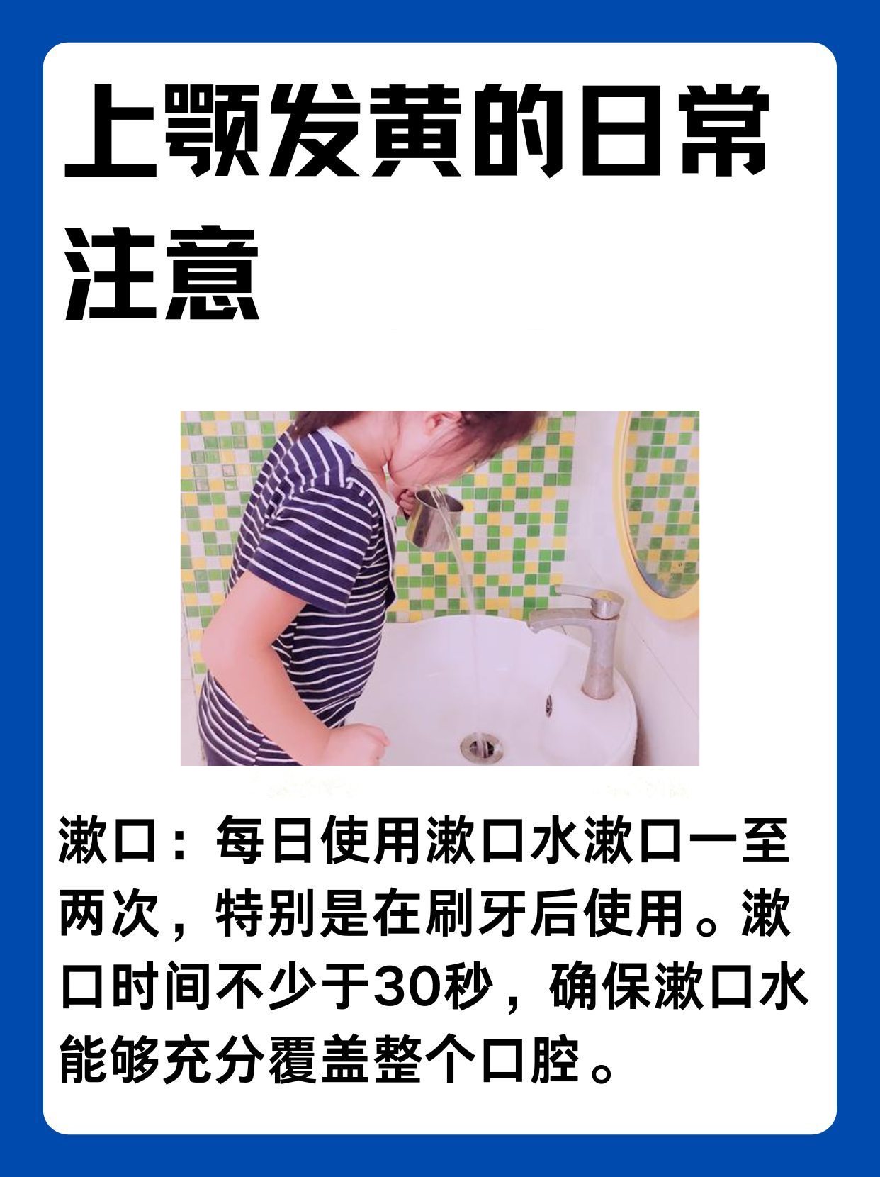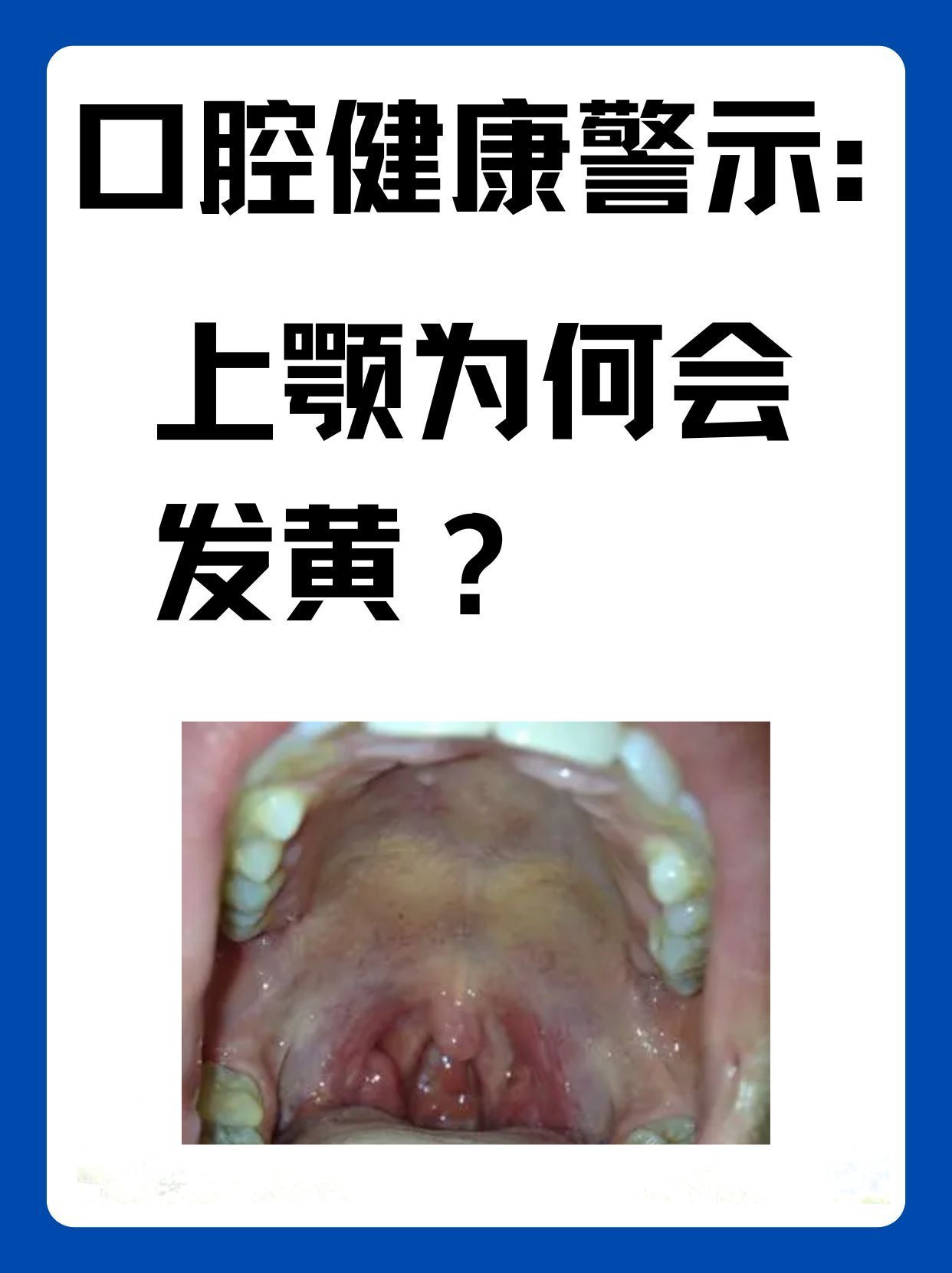 ❤️总之,口腔上颚发黄可能是由多种因素引起的,我们需要根据具体情况采取相应的应对策略。同时,保持良好的口腔卫生习惯是预防口腔问题的关键。