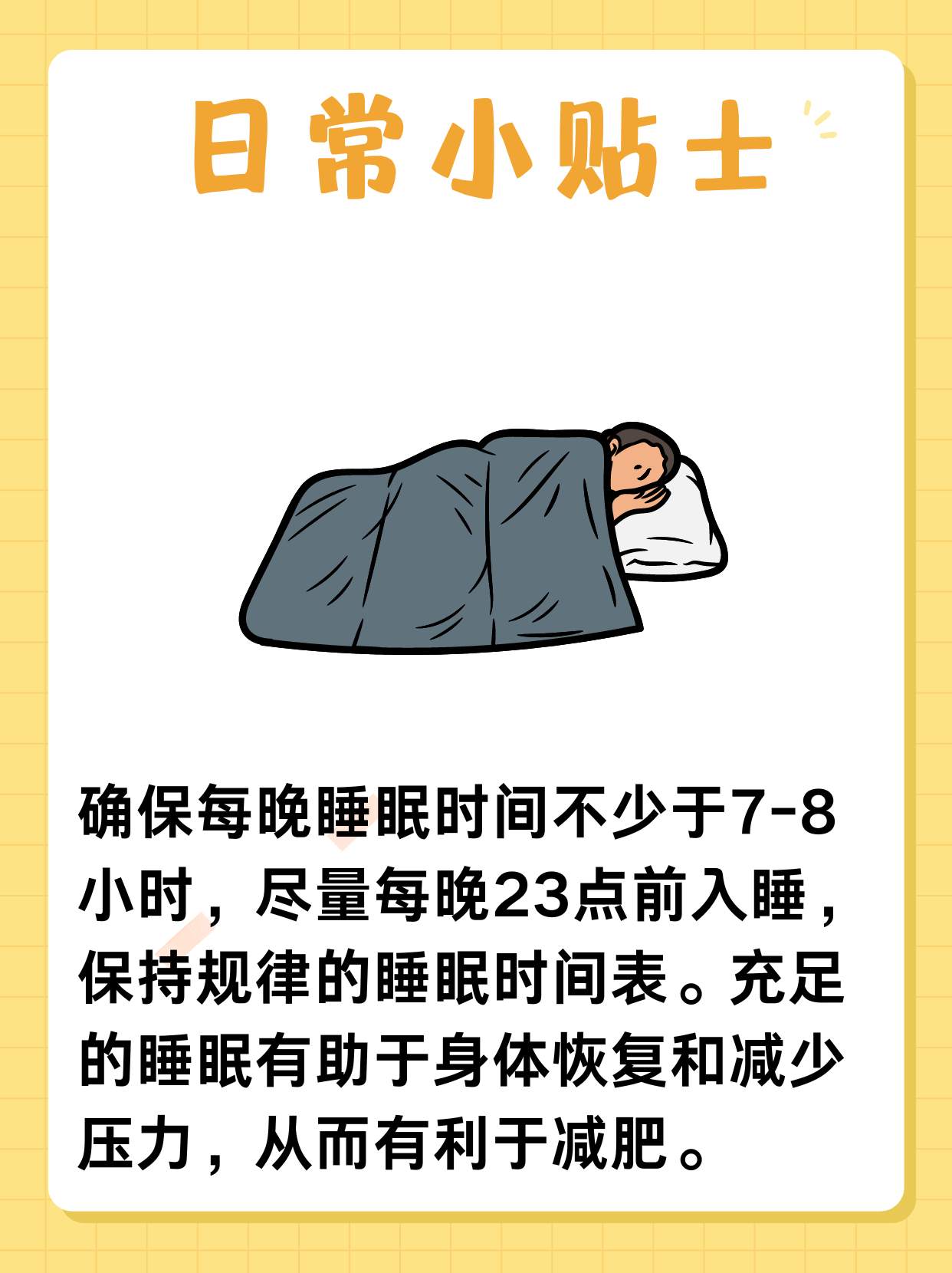 🌷2、体重监测:每周至少测量一次体重,以了解自己的体重变化情况。建议在固定的时间和条件下进行测量,以获得更准确的数据。还要每月至少测量一次体脂率,以了解自己的脂肪占比和减肥效果。可以使用电子秤或皮脂尺等工具进行测量。