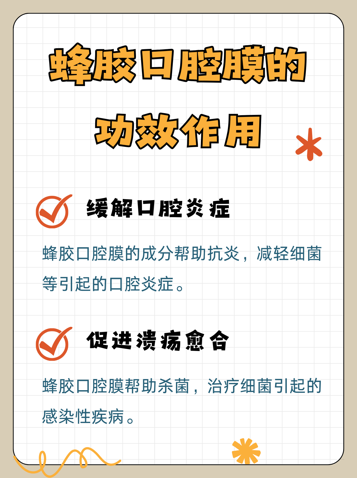 3️⃣缓解口腔炎症:蜂胶口腔膜中的蜂胶、薄荷脑等成分具有一定的抗炎效果,能有效减轻口腔炎症,包括由细菌或病毒感染引起的口腔炎症。