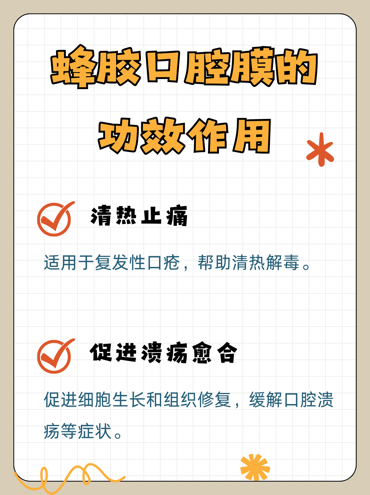 1️⃣清热止痛:蜂胶口腔膜具有清热止痛的功效,适用于复发性口疮。其成分中的蜂胶膏和薄荷脑等能有效缓解口腔内的疼痛感和不适感。