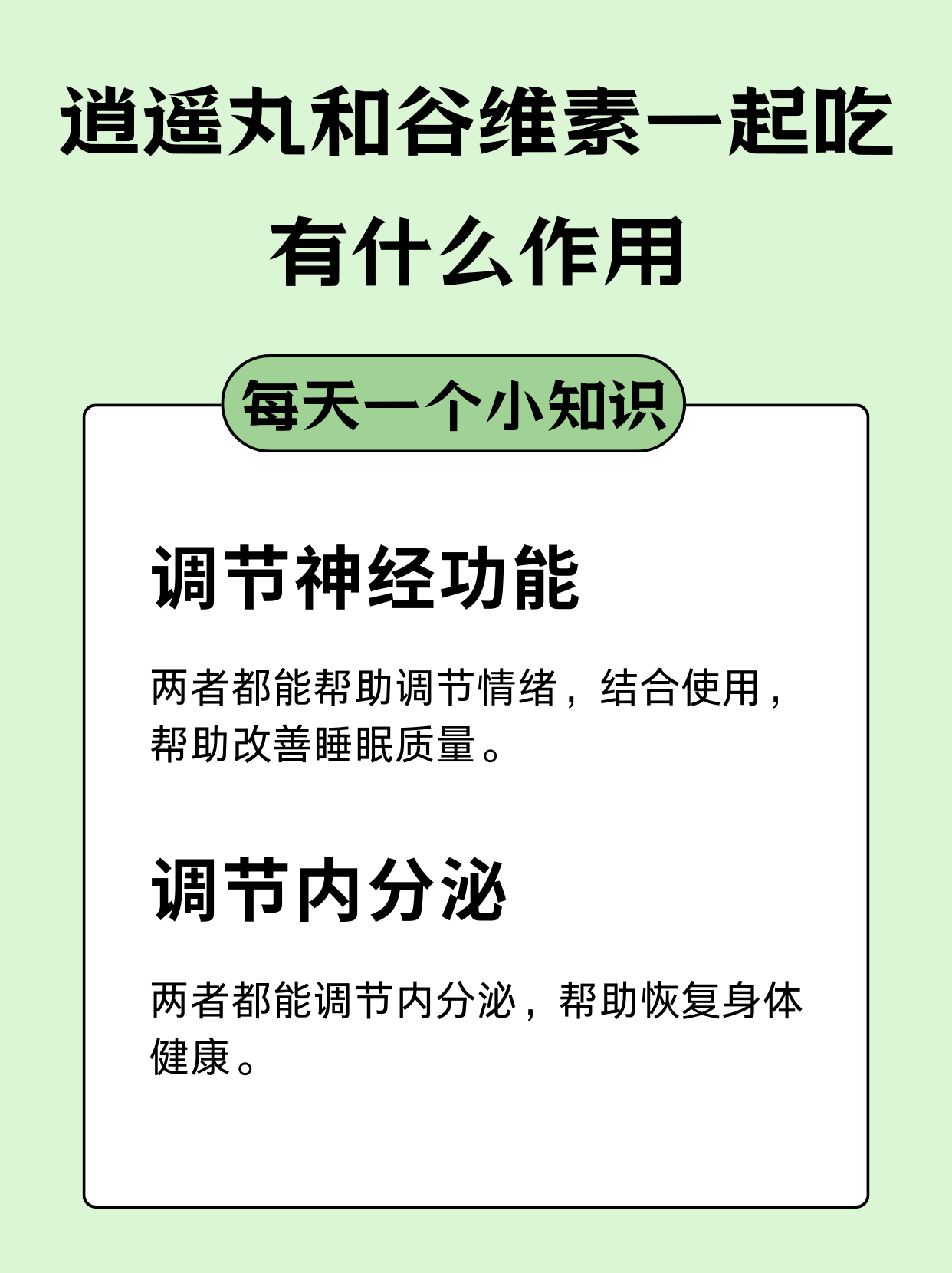 2️⃣调节内分泌:逍遥丸和谷维素都可以调节内分泌功能,改善月经不调等症状,两者一起使用,能更有效地解决这类问题。