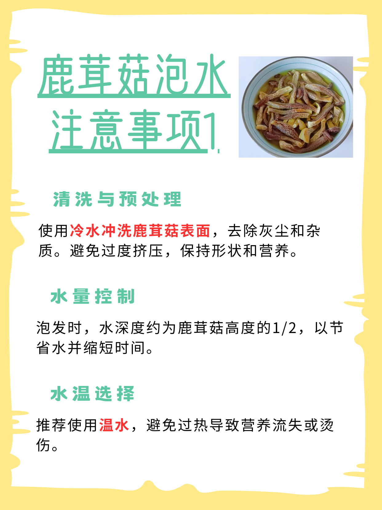 ➡️水温选择:建议使用温水泡发,这样既能加速鹿茸菇的吸水过程,又不会因为水温过高而破坏其营养价值和口感。避免使用过热的水,以免烫伤鹿茸菇或造成营养流失。