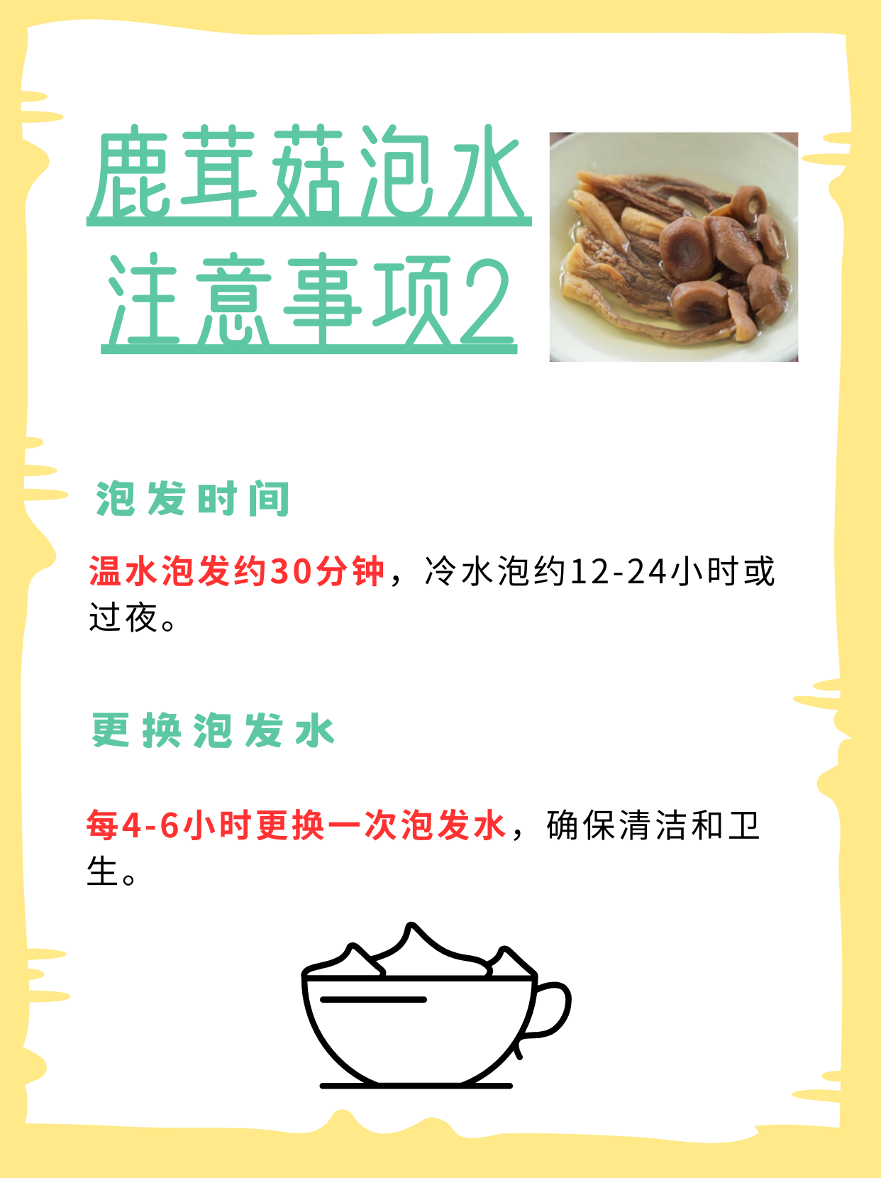 ➡️更换泡发水:泡发过程中要定时更换泡发水,一般每4-6小时更换一次,以确保水的清洁和鹿茸菇的卫生。