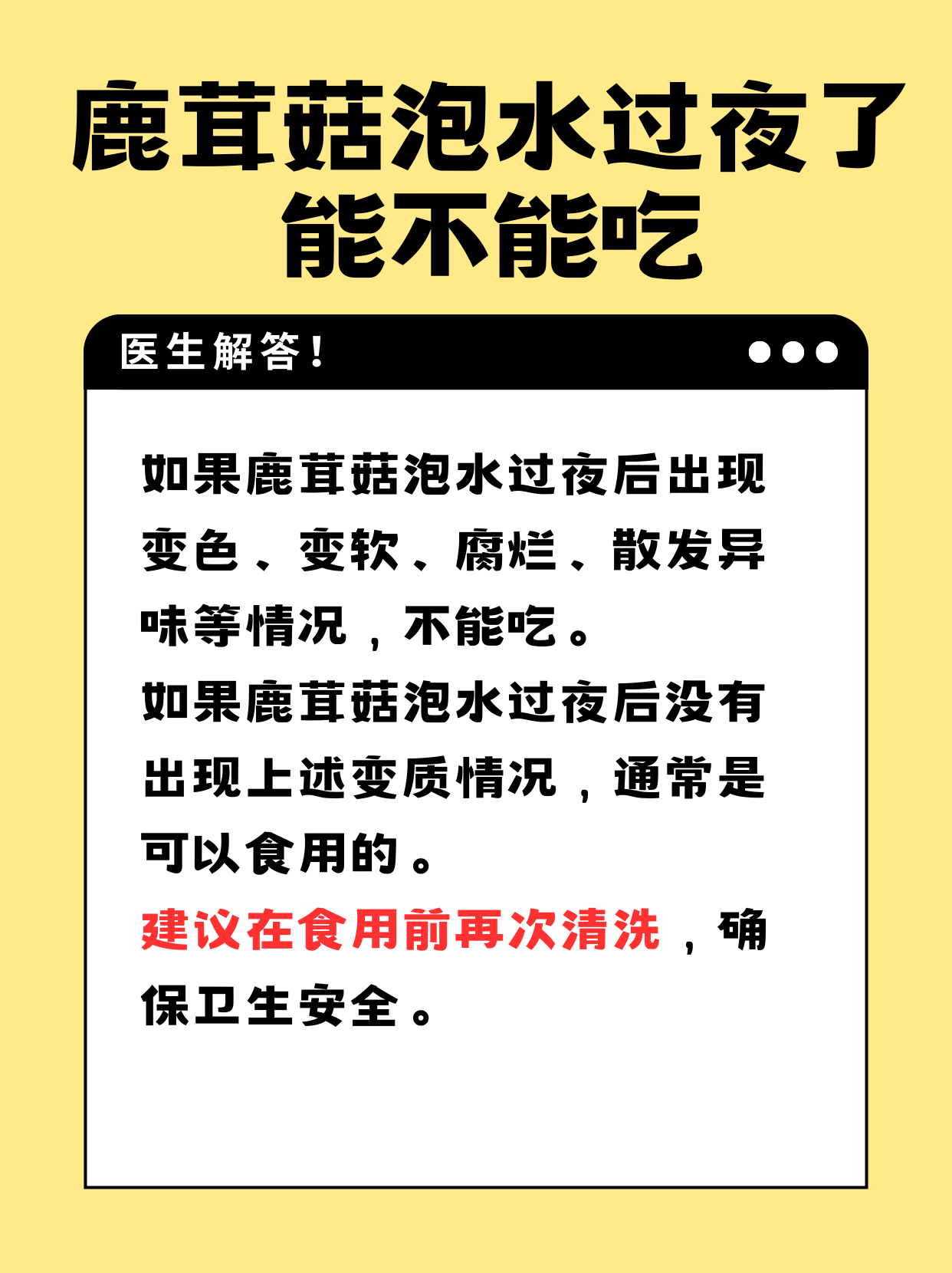 通常情况下,如果鹿茸菇泡水过夜后,出现了变质的情况,如变色、变软、腐烂或散发异味,此时是不建议食用的🍎,可能会对身体造成伤害,如引起肚子痛、拉肚子或其他更危急的情况。如果鹿茸菇泡水过夜以后,并没有出现变质的情况,而且也没有出现异味的现象🍏,一般是可以吃的。