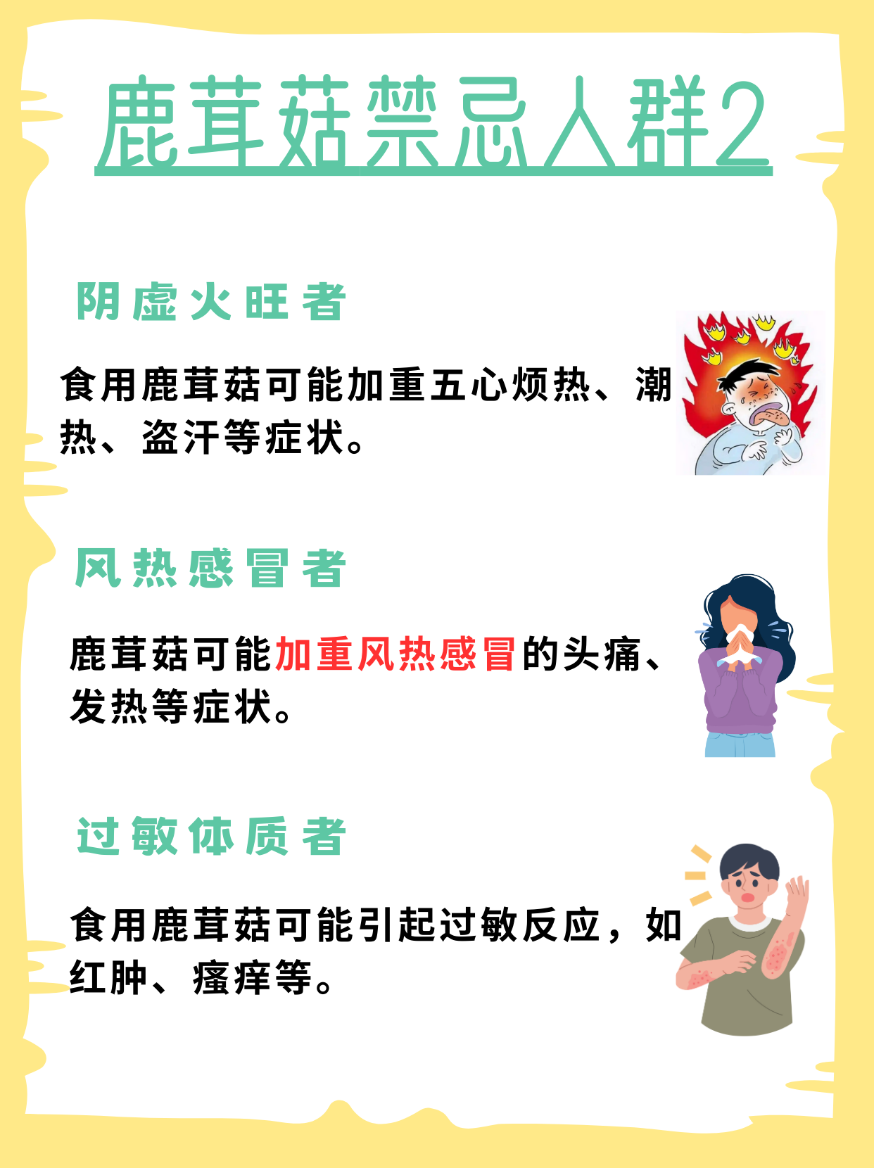 ➡️风热感冒者:对于风热感冒的人来说,鹿茸菇的热性可能会加重头痛、发热等症状,因此不适宜食用。