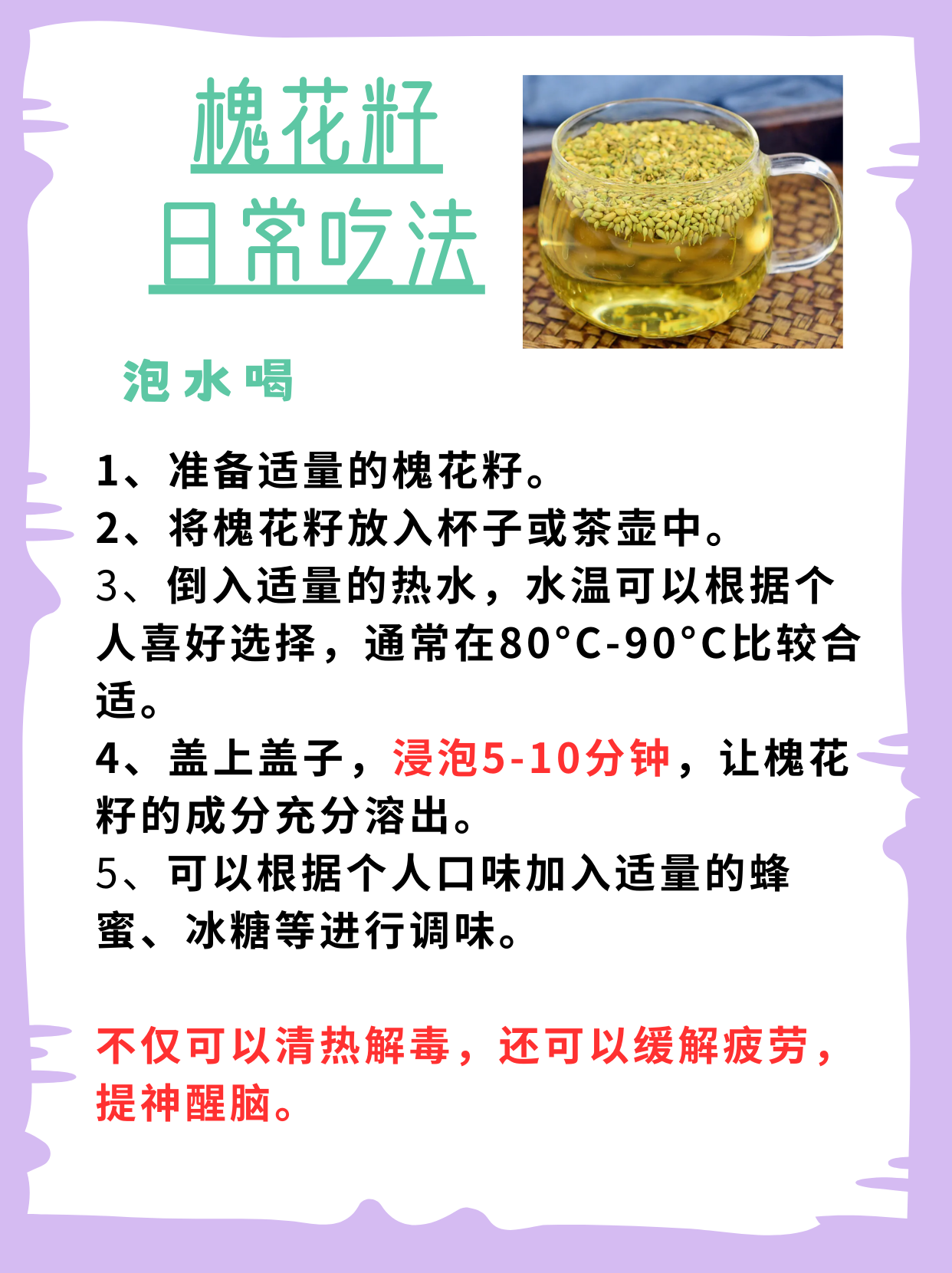 日常对于槐花籽的食用也很简单,我比较推荐泡水喝🍀,不仅可以清热解毒,还可以帮助我们缓解疲劳,提神醒脑。