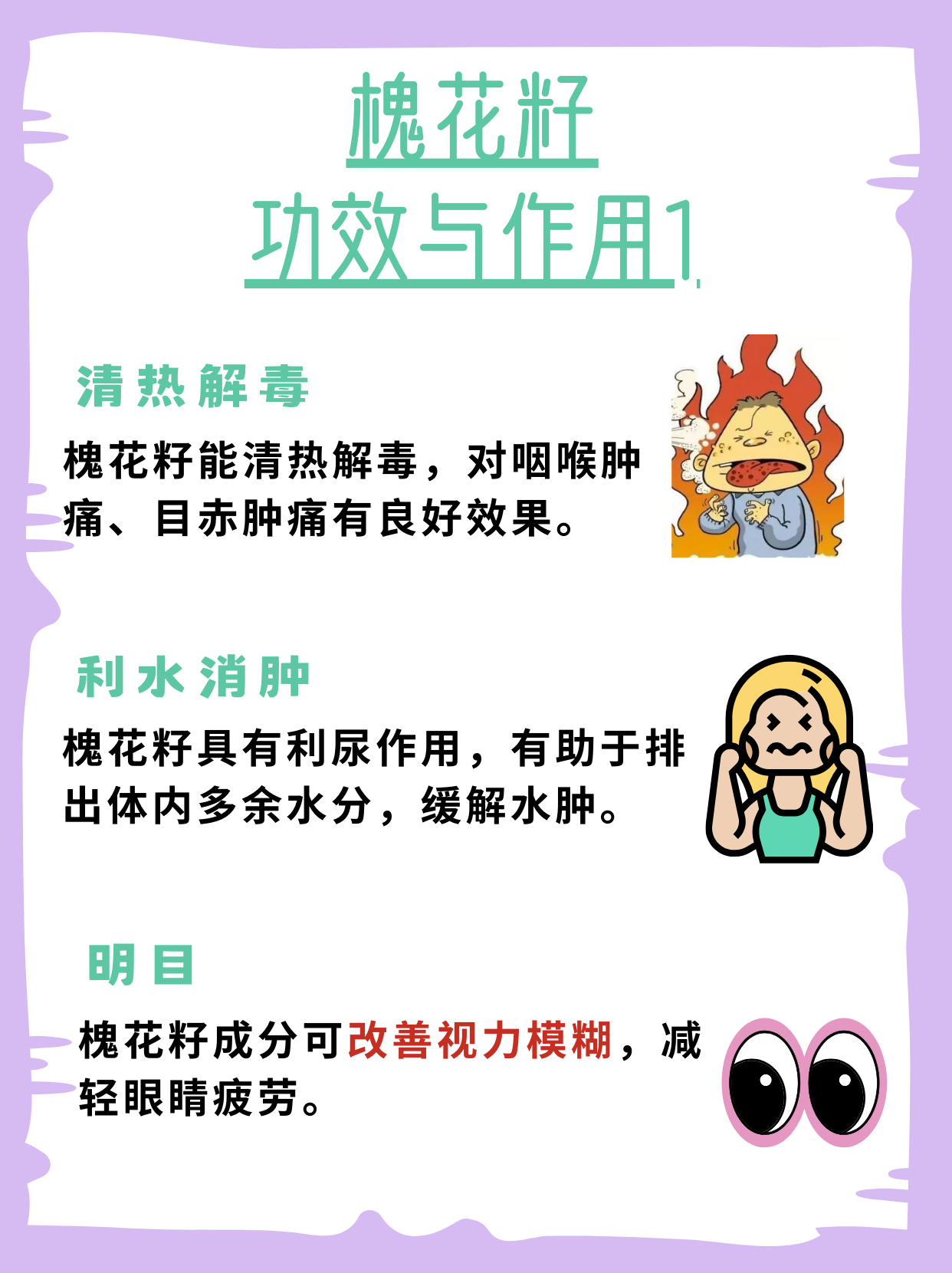 🌾明目:槐花籽中的有效成分有助于改善视力模糊,减轻眼睛疲劳,对于保护视力、缓解眼部疲劳有一定效果。