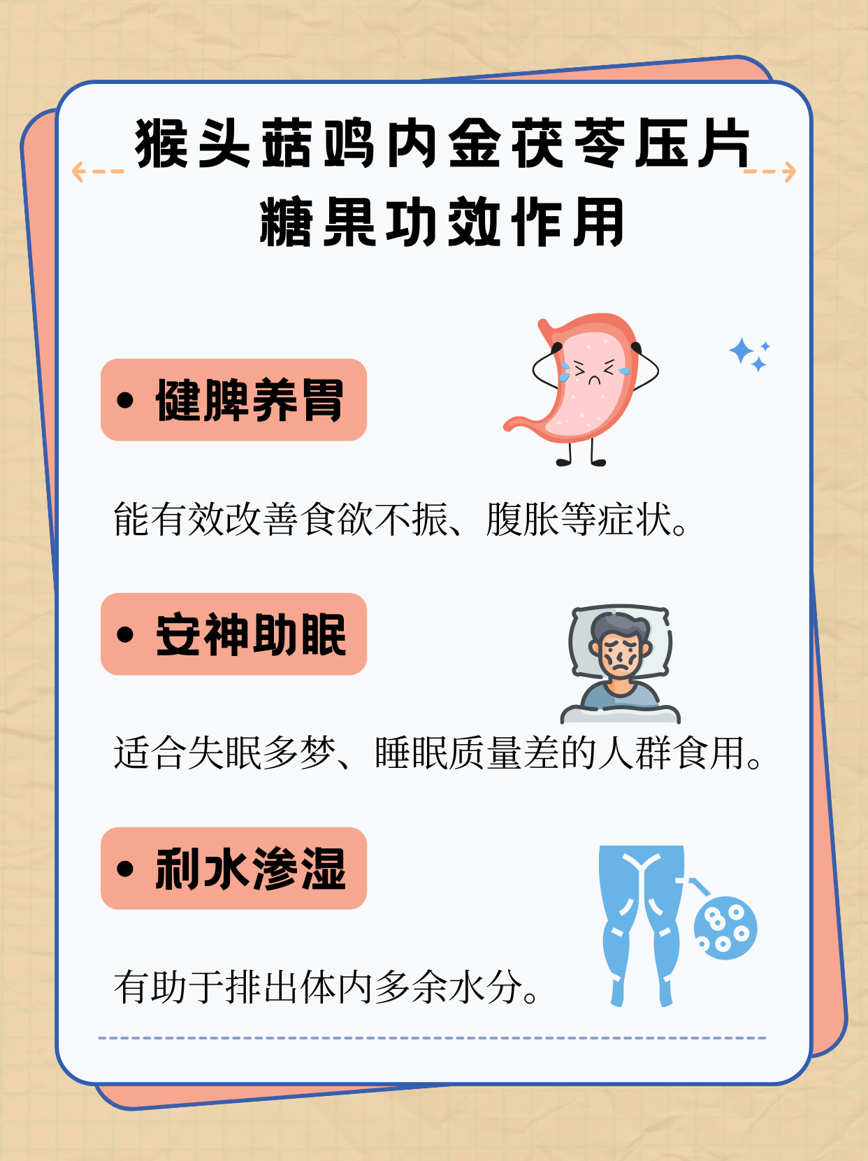 🌿猴头菇鸡内金茯苓压片糖果的功效主要体现在以下几个方面: