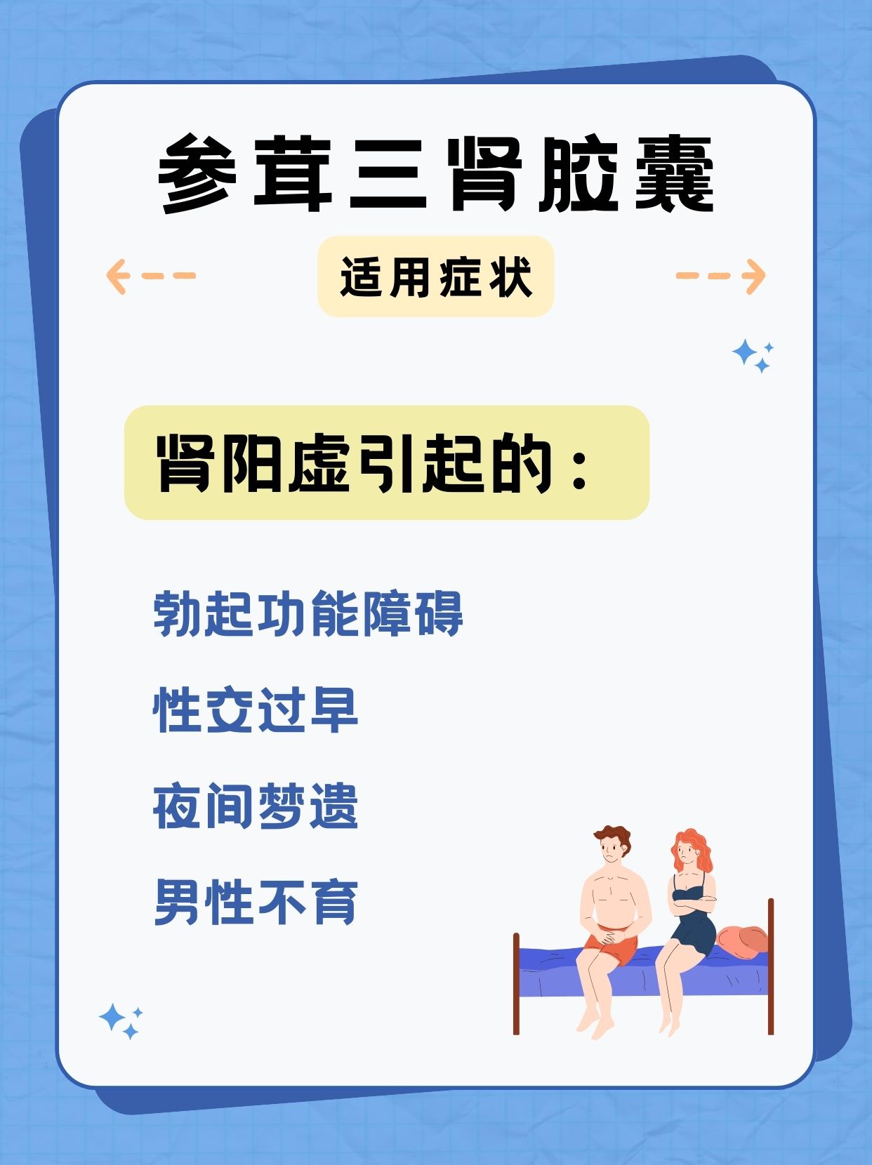 其实,参茸三肾胶囊属于药物💊而不是保健品,它适用于肾阳虚导致的男性性功能障碍问题,但对于提高性功能的效果,目前仍缺乏🙅♂️足够的科学证据支持。以下是我整理的一些参茸三肾胶囊的适用症状👇