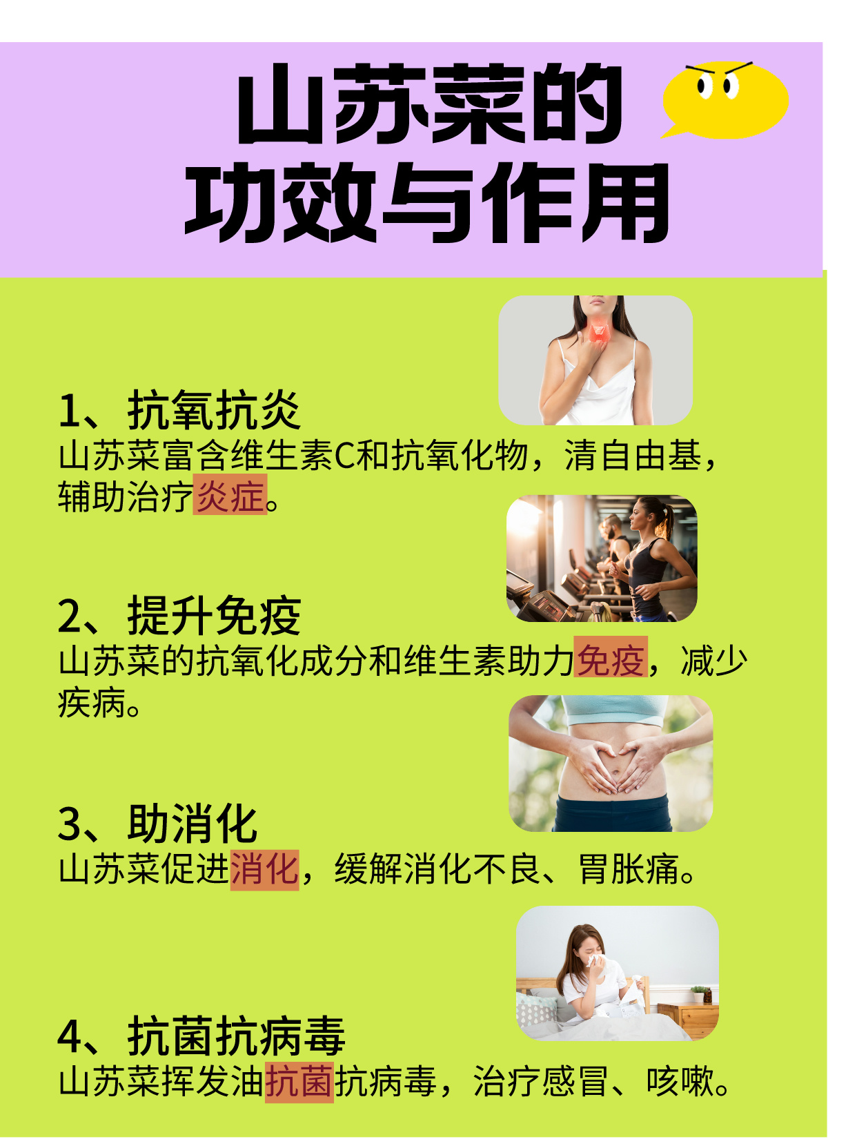 3、改善消化不良:山苏菜具有一定的消化促进作用,可以帮助改善消化不良、胃胀、胃痛等症状。🏃