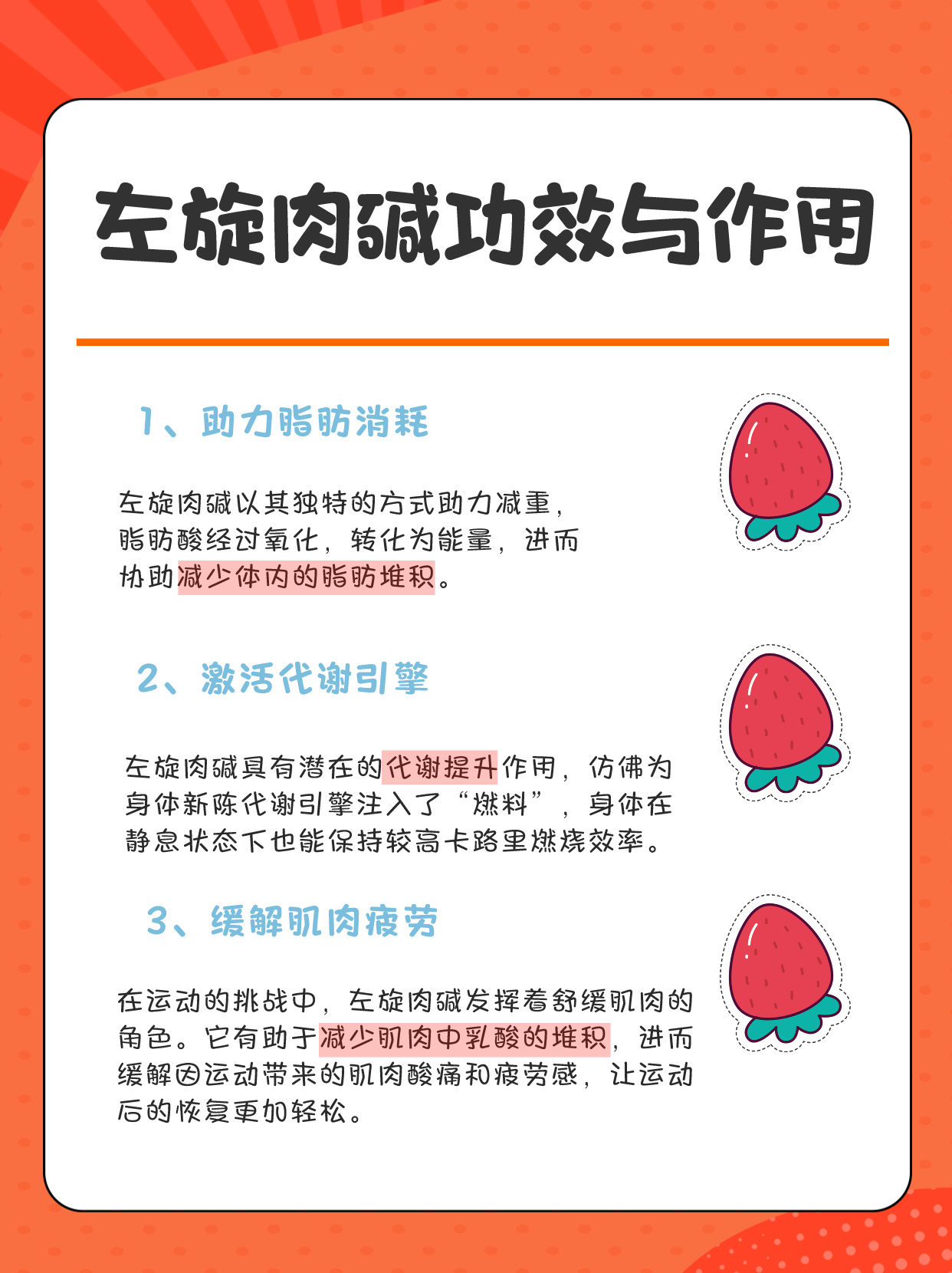 2、提高代谢率:左旋肉碱可能有助于提高新陈代谢率,这意味着身体在休息时也能燃烧更多的卡路里。🎁