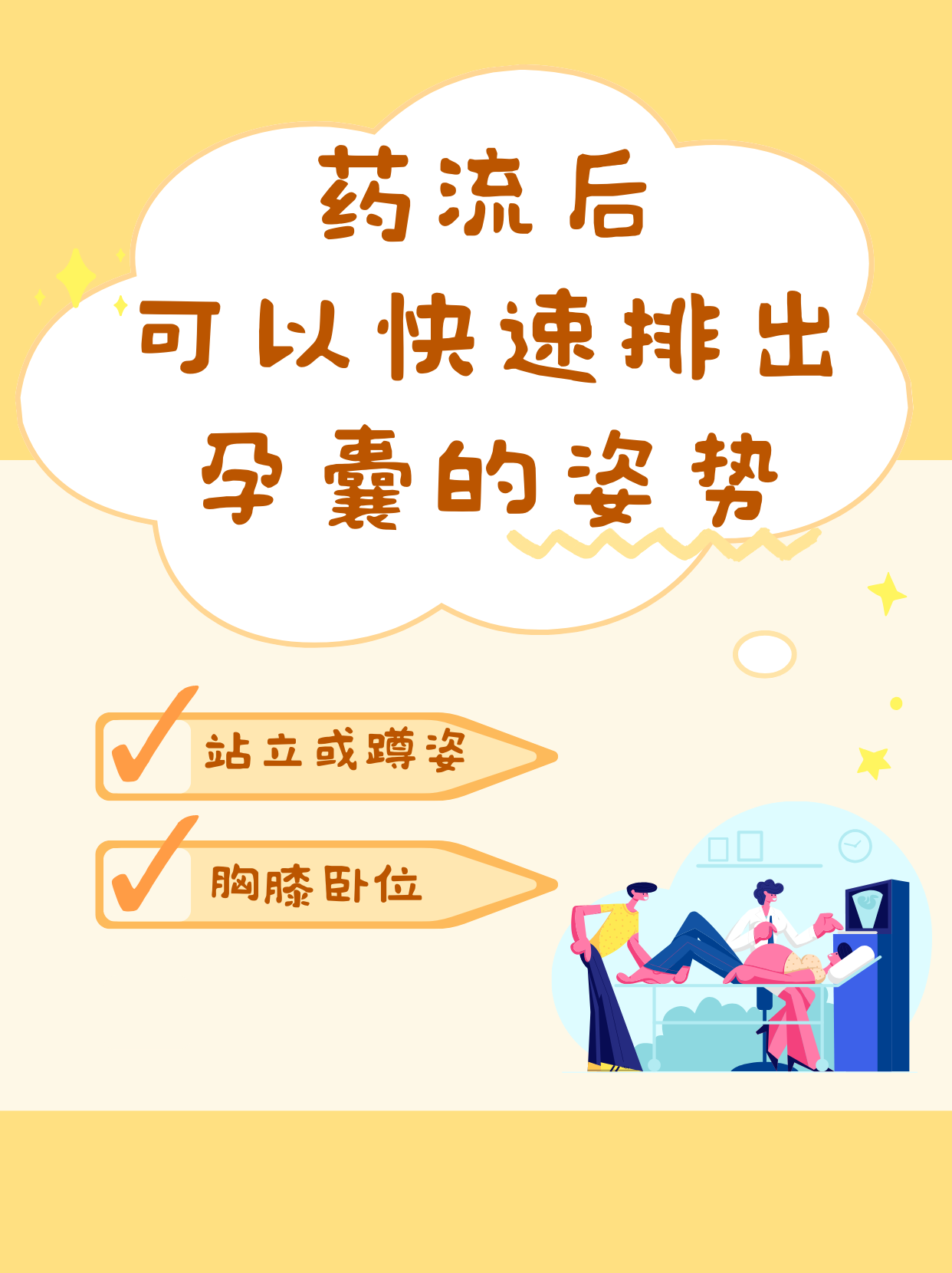🚅胸膝卧位:类似于产妇分娩胎儿的姿势,这种姿势有时也被认为可以有助于孕囊的排出。