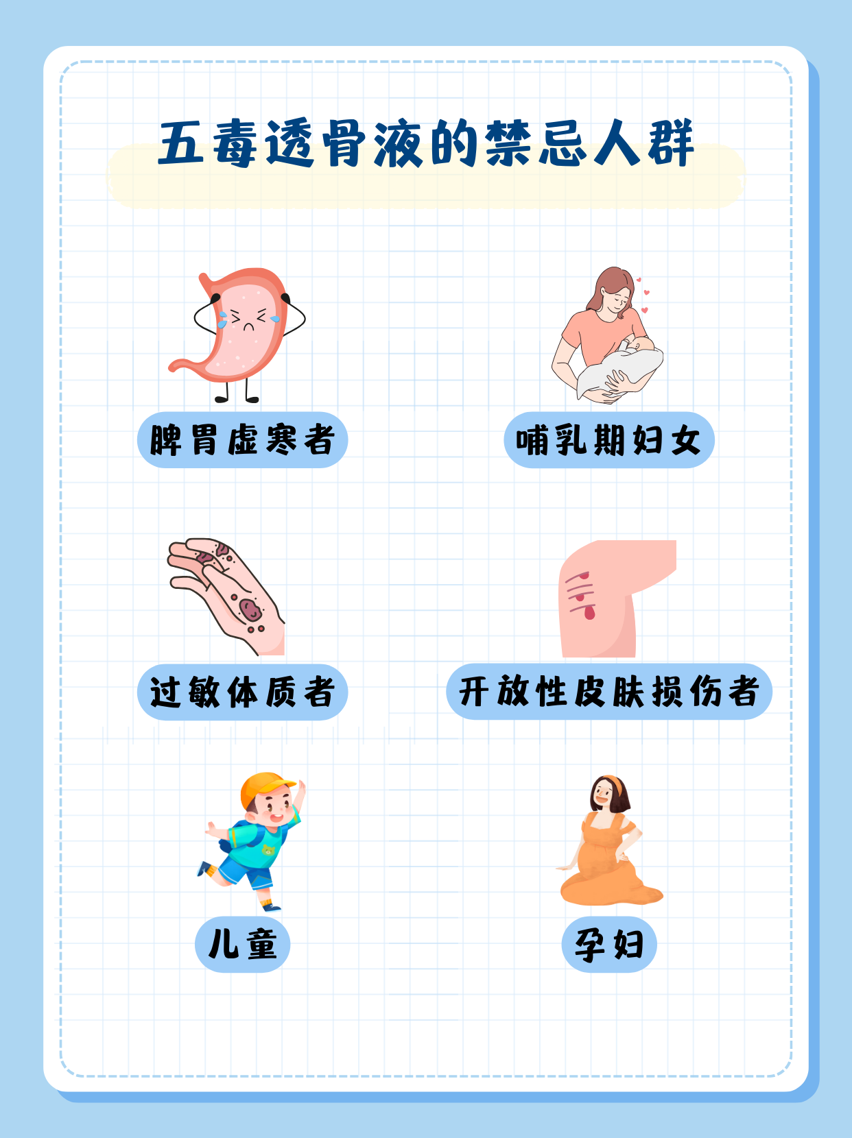 五毒透骨液虽然具有一定的舒筋活血、消肿止痛等功效,但并非人人适用。以下人群在使用前需特别谨慎或避免使用: