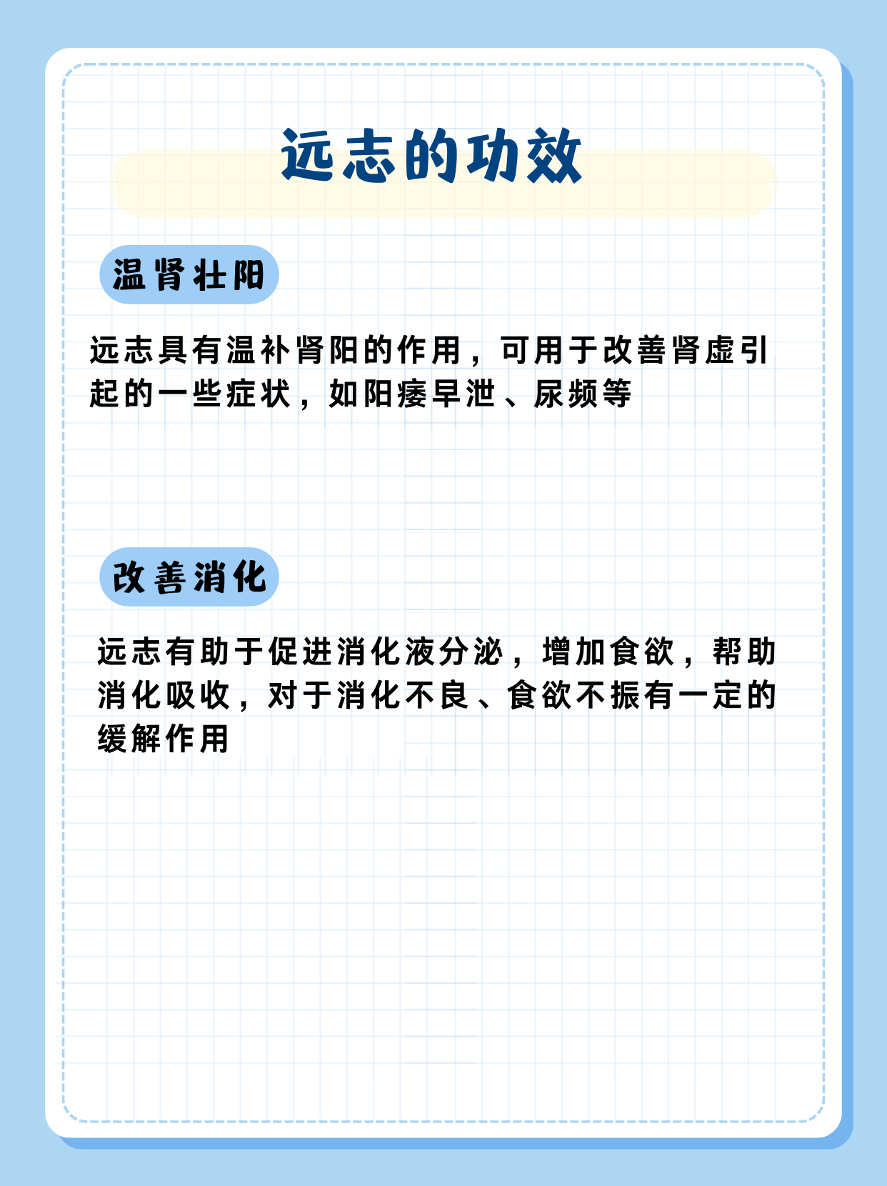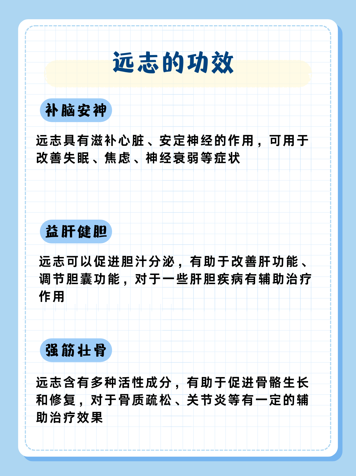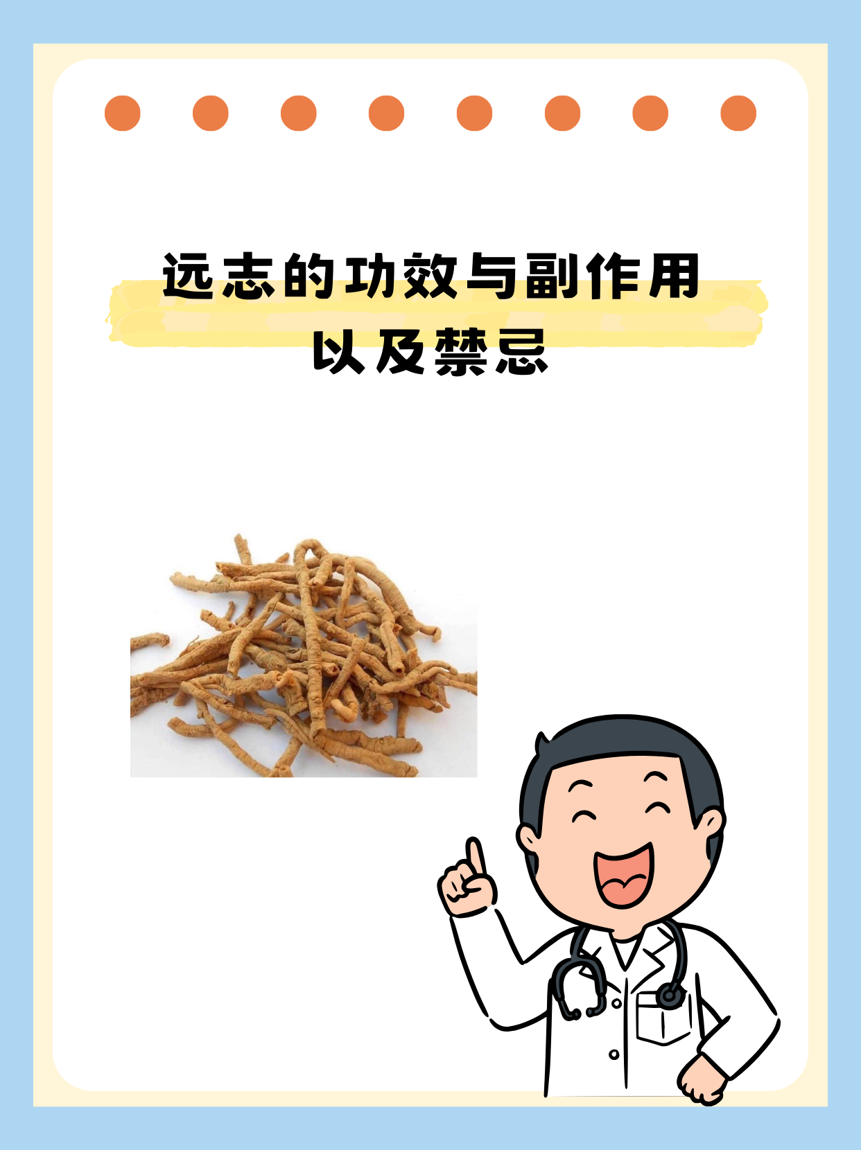 💡当然,远志的功效远不止这些,它还能起到镇静催眠、消肿利尿等作用。但请注意,远志虽然功效强大,但并非人人适用。在服用远志时,一定要遵医嘱,不可擅自用药,以免造成不良影响。
