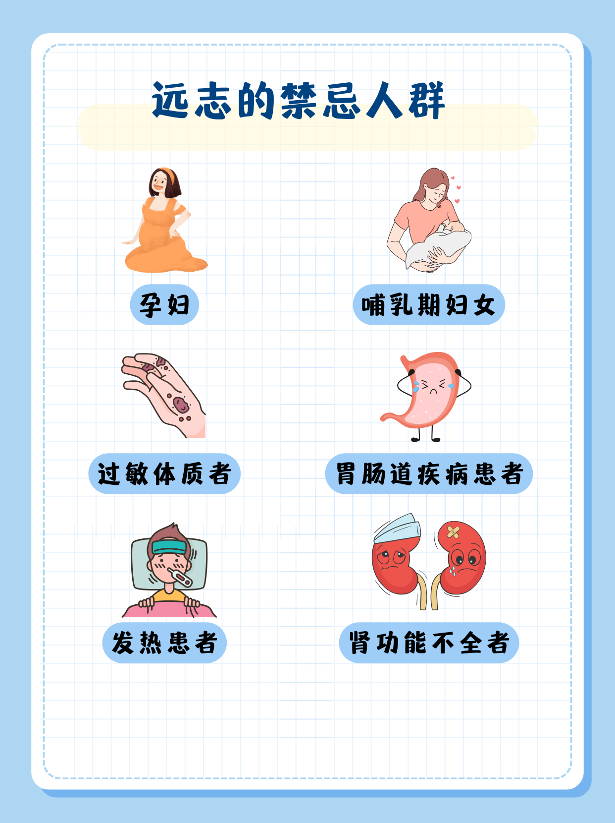 孕妇和哺乳期妇女的身体处于特殊状态,需要格外注意用药安全。远志具有一定的药性,可能对胎儿或婴儿产生不良影响,因此这两类人群应禁用远志。