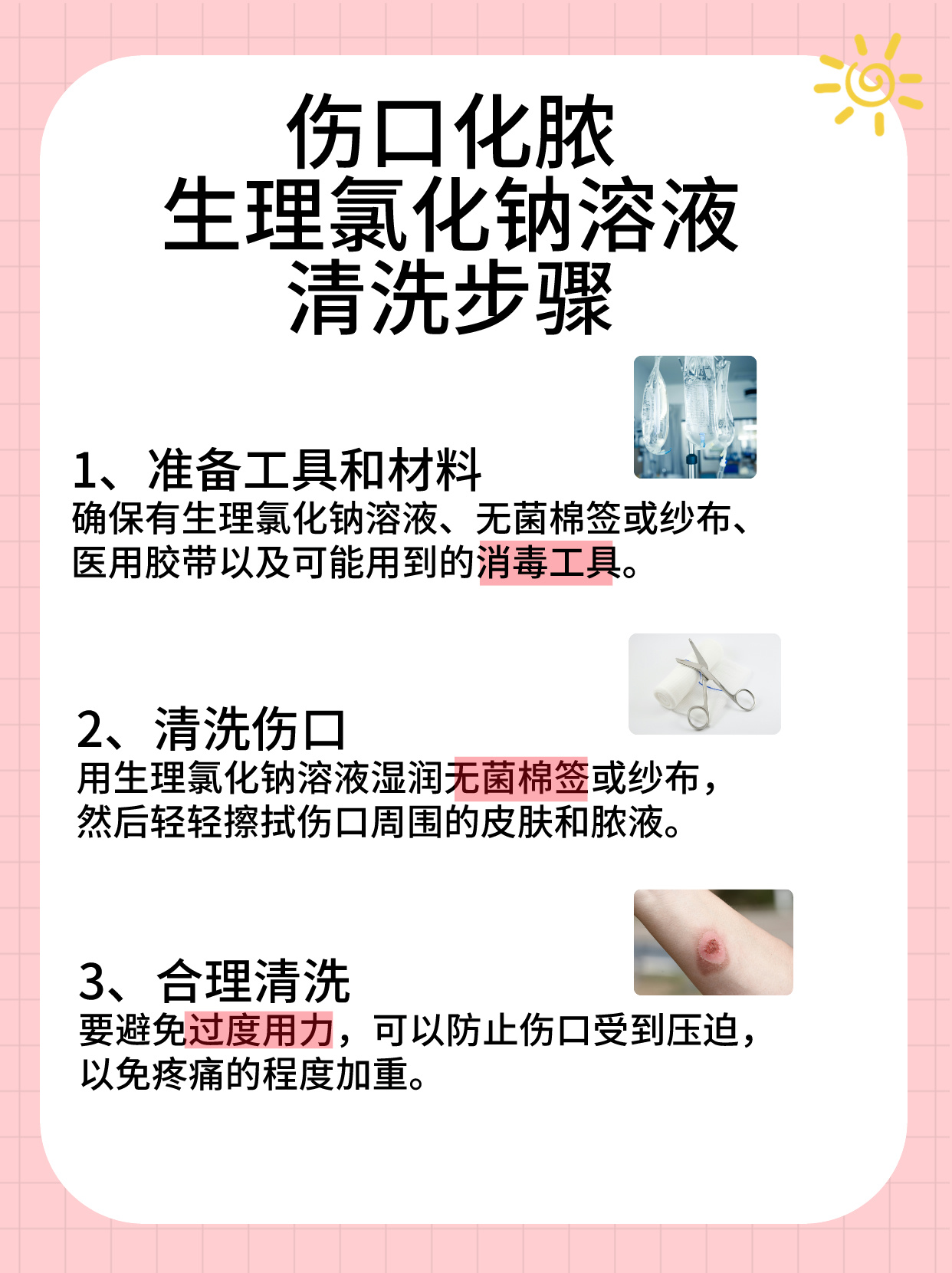 除此以外,医生还告知,伤口化脓可以通过生理氯化钠溶液清洁的放射缓解,以免感染加重。🎉