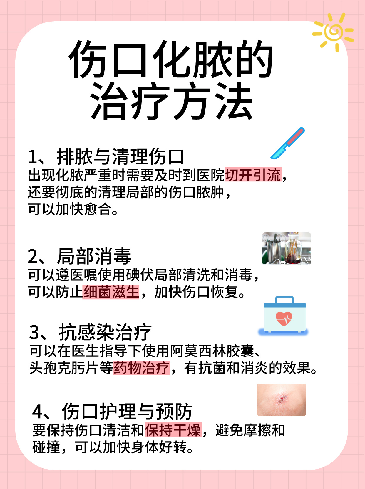 同时医生还告知了伤口化脓的治疗方法,具体如下:🥑