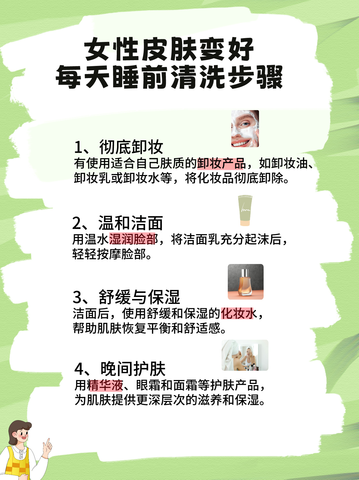 除此以外,医生还告知要每天晚上洗脸,可以起到良好的保养皮肤效果。🌙