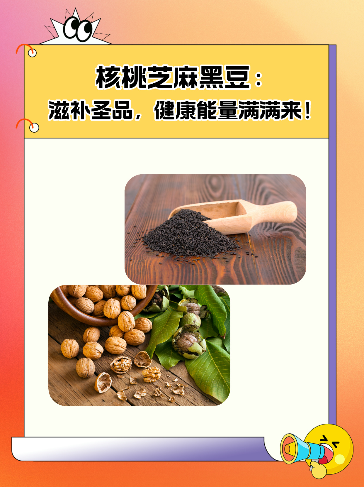 🆗1月19日,我老婆前段时间一直在节食减肥,由于长时间没有吃一些营养成分含量高的食物,导致了身体现在越来越虚弱了,而且精神状态也不太好,我就想给他补充一些营养,听朋友说核桃芝麻黑豆营养成分比较高,也想要让老婆吃一些,我还打电话咨询了一下医生朋友核桃芝麻黑豆的功效和作用,今天就把这些分享给大家。🔍